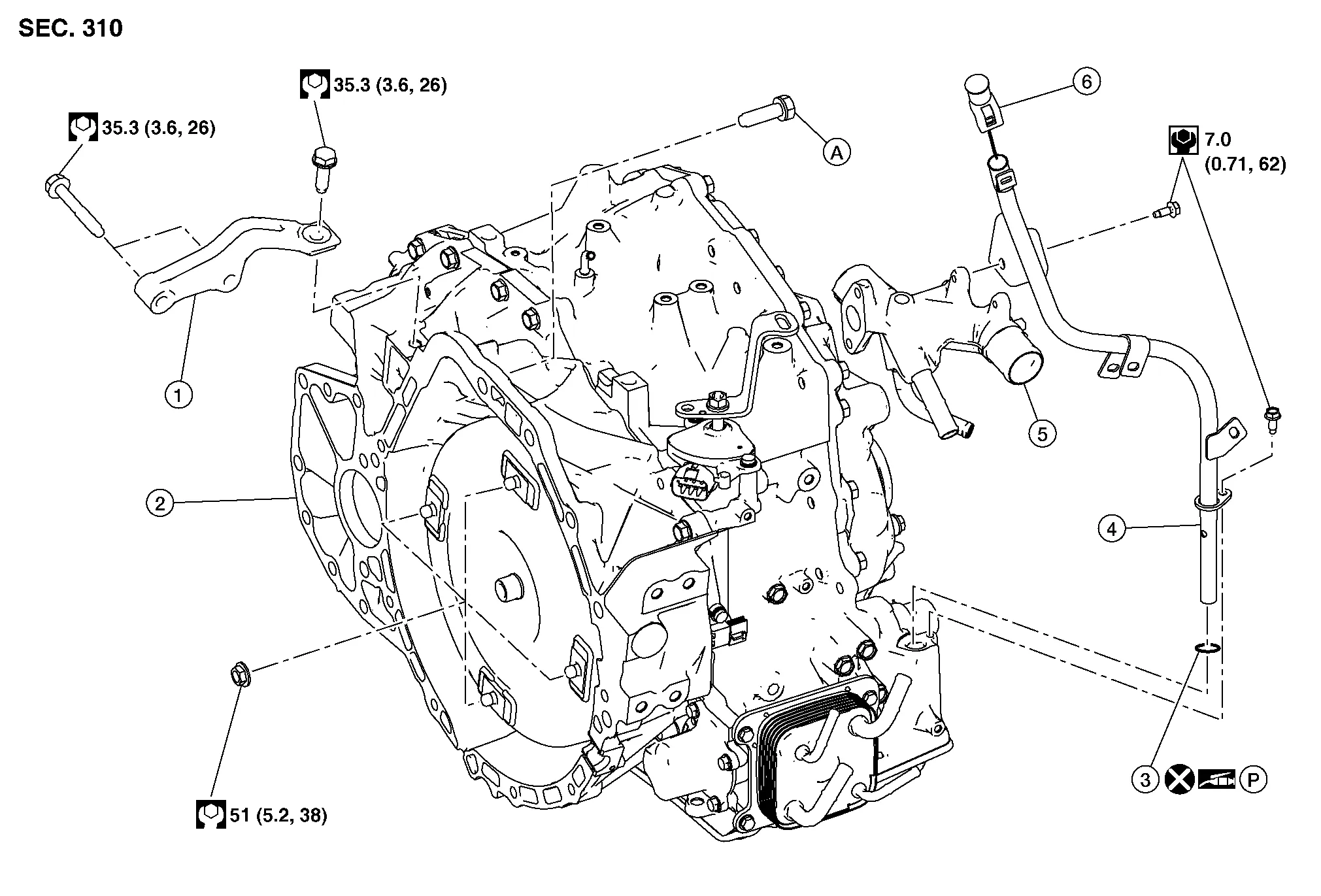 | 4. | CVT fluid charging pipe | 5. | Water outlet | 6. | CVT fluid charging pipe cap |