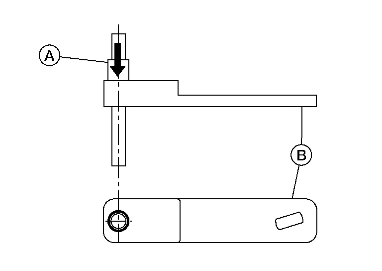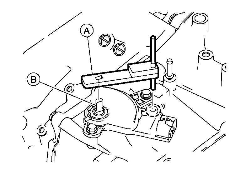 Place Tool (A) onto the manual shaft (B) while inserting its pin in the hole of the transmission range switch.