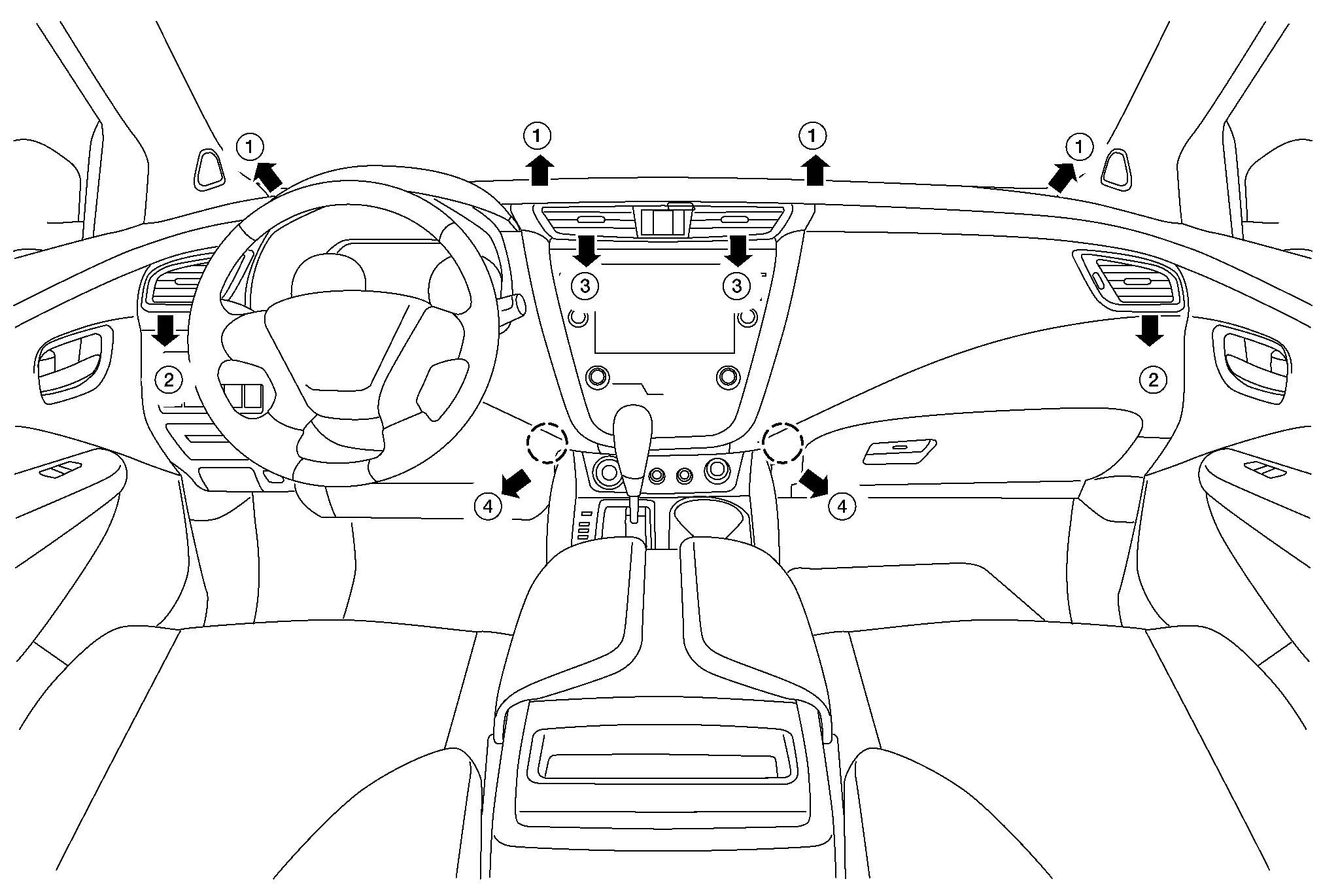 *1: Air flow is also supplied to front foot until passenger room temperature stabilizes when temperature setting is other than 18°C (60°F). At that time, air flowing is the same as the 18°C (60°F) setting.