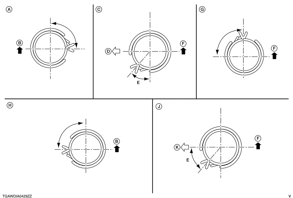 | CVT Water hose B | CVT oil warmer | H | B: Align with the paint mark (C) as shown. |