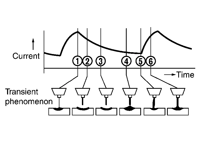 As shown in the figure, a short circuit and arc pattern is repeated.
