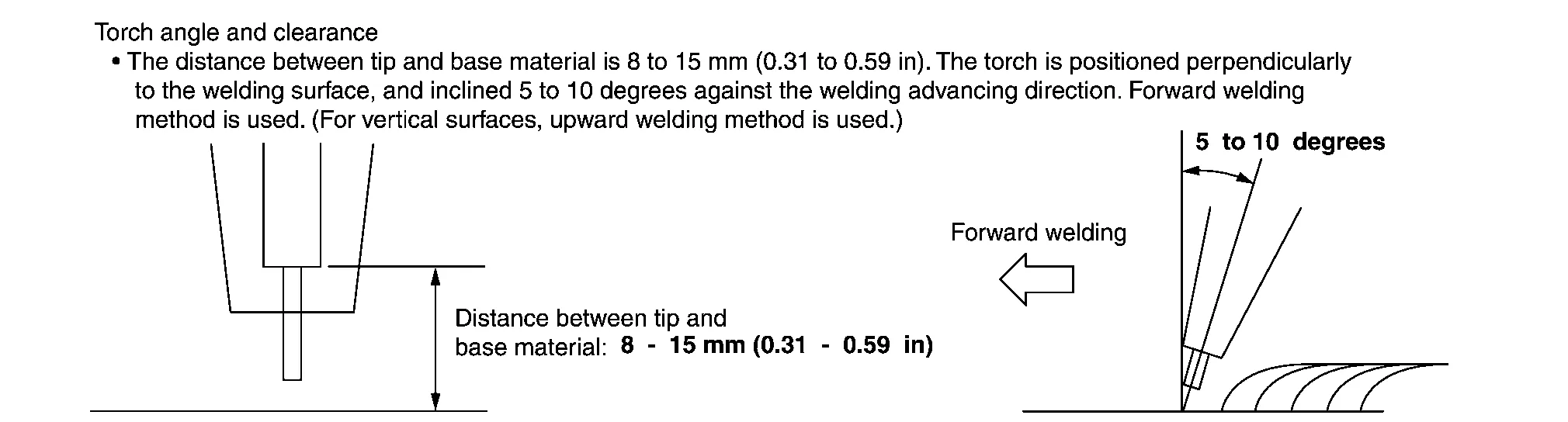 Tack welding: Temporarily, but securely weld at approximately 10 mm (0.39 in) intervals.