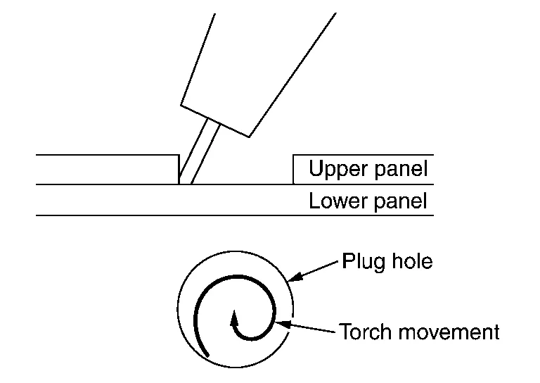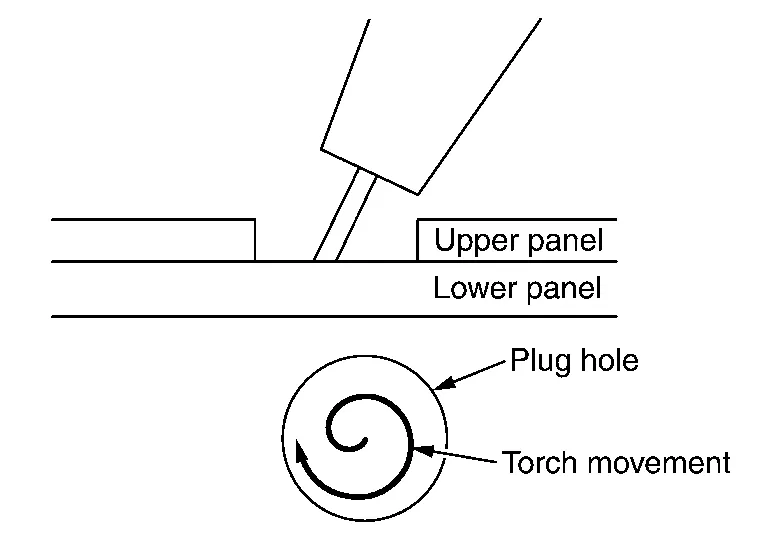 Keep the upper panel and lower panel tightly together. Before welding, contact closely the points to be plug welded.