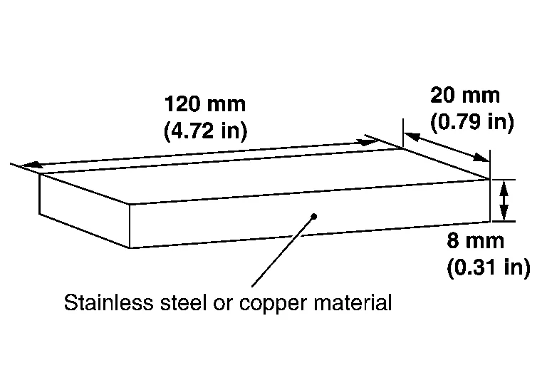 When thin panels are plug welded, a backing block, as shown in the figure, is placed on the underside of the panels, and fixed onto the plug hole side with a clamp.