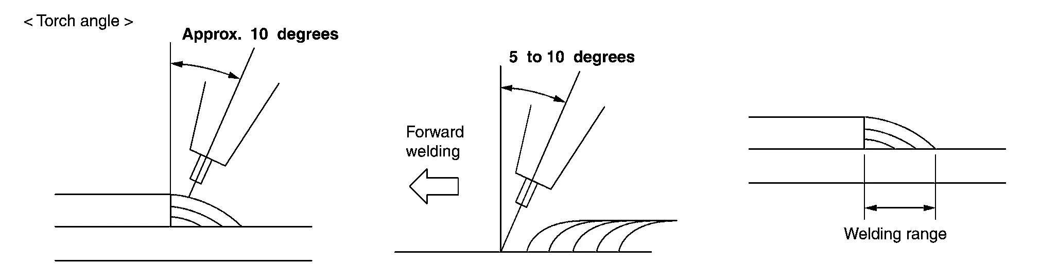 Basically, the following welding conditions are intended for horizontal welding. Therefore, depending on the welding direction, adjustment may be necessary.