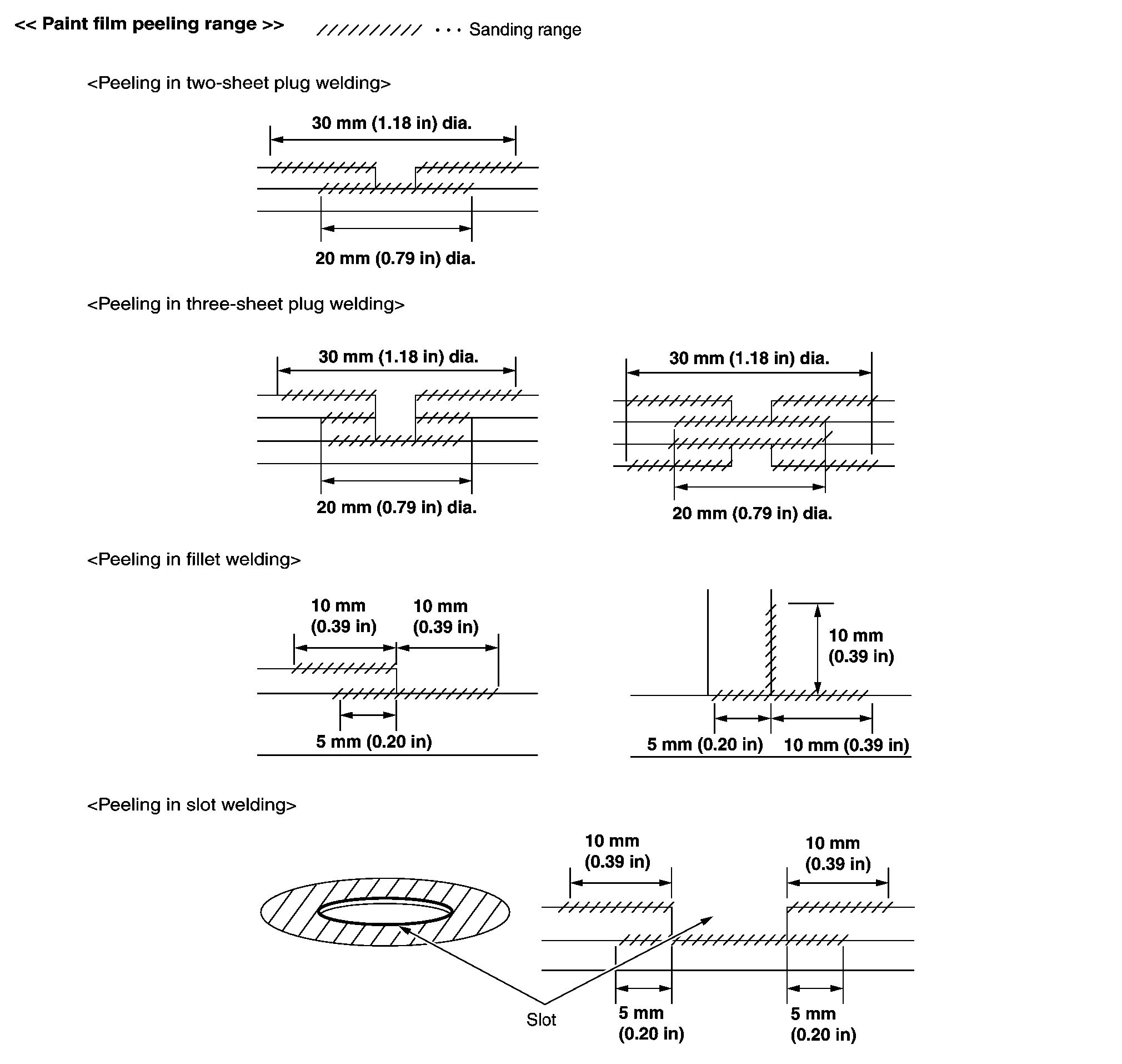 Observe the welding conditions and lengths specified in the Body Repair Manual.